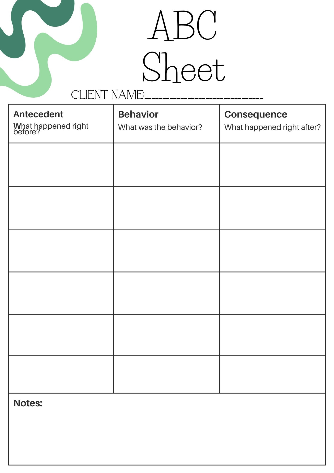 ABC Data Sheet Antecedent Behavior Consequence For Anecdotal Therapy Data Bcba Aba Bt Etsy New Zealand
