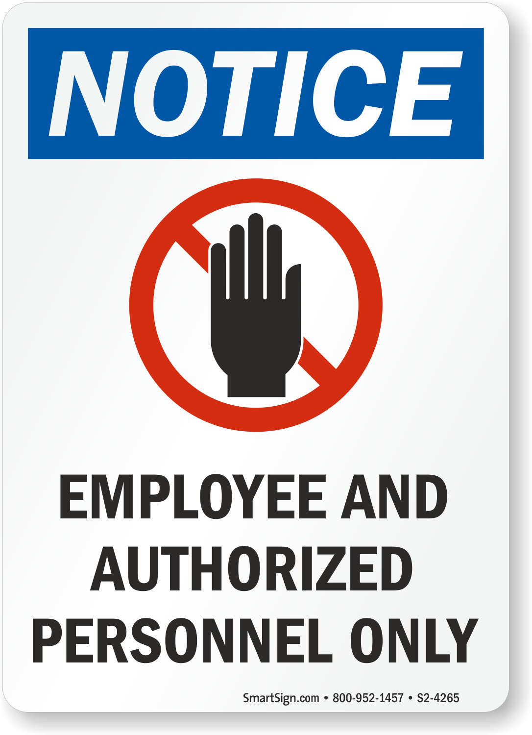 Notice Employee And Authorized Personnel Only Sign SKU S2 4265