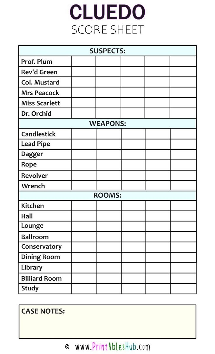So, next time you’re looking for a fun and engaging activity to liven up your game night, give Cluedo printable sheets a try. Whether you’re playing with friends or family, these printable sheets are sure to bring out the detective in everyone. Get ready to solve the mystery and have a blast with Cluedo printable sheets!