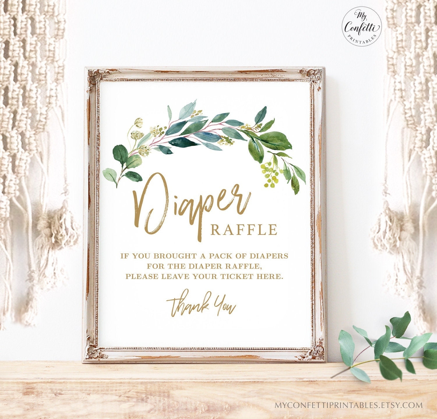 Greenery Baby Shower Diaper Raffle Sign Printable Baby Shower Diaper Raffle Sign Neutral Boy Or Girl MCP813 MCP814 MCP825 Etsy