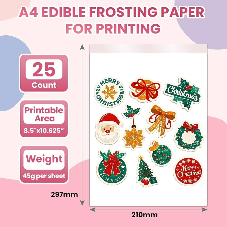 Amazon ELFLUENT 25 Count Edible Paper A4 11 7 X 8 3 Edible Image Paper Frosting Sheets For Edible Printer Icing Sheets Edible Paper For Cakes Printable Sugar Sheets Grocery Gourmet Food