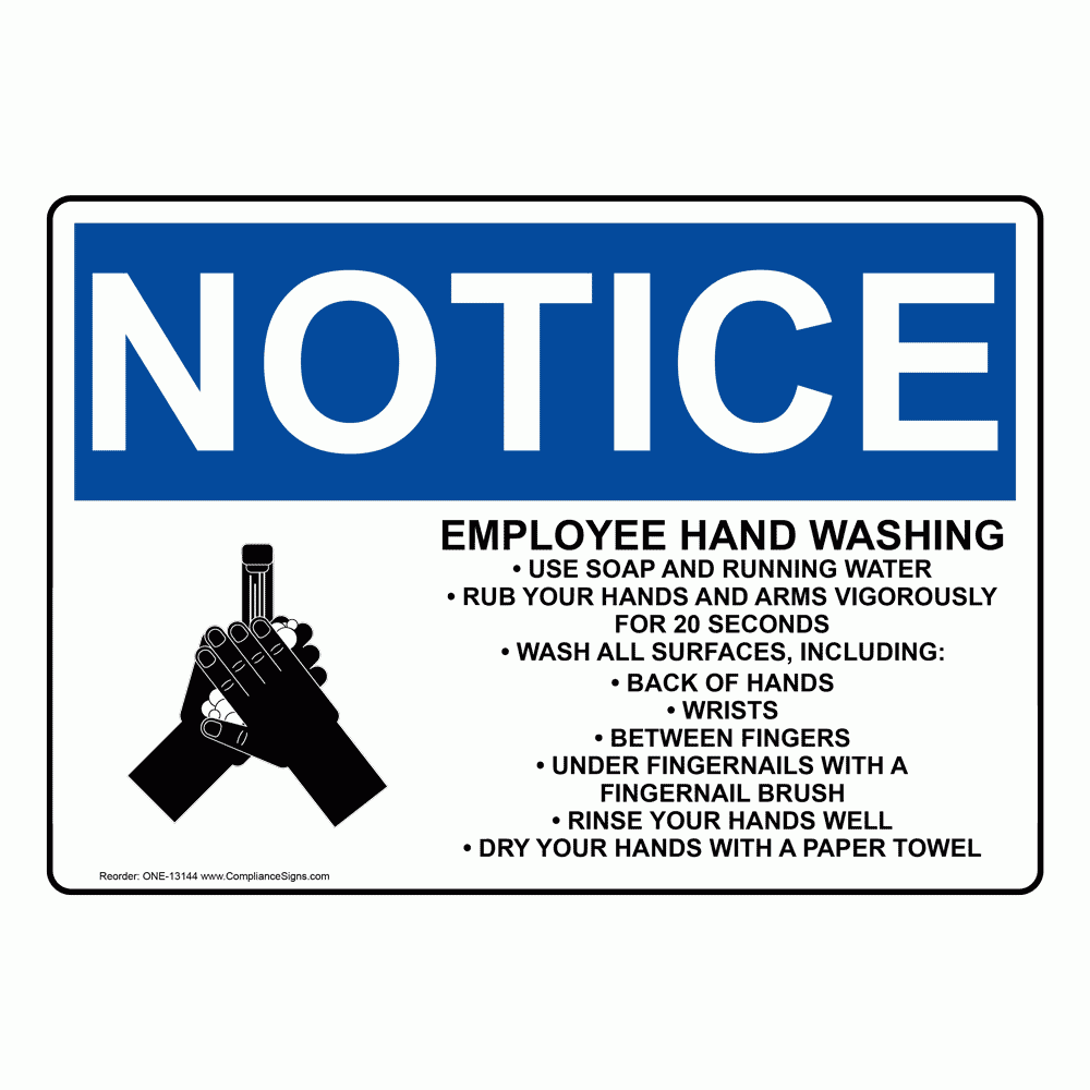 OSHA Sign NOTICE Employee Hand Washing Sign Handwashing