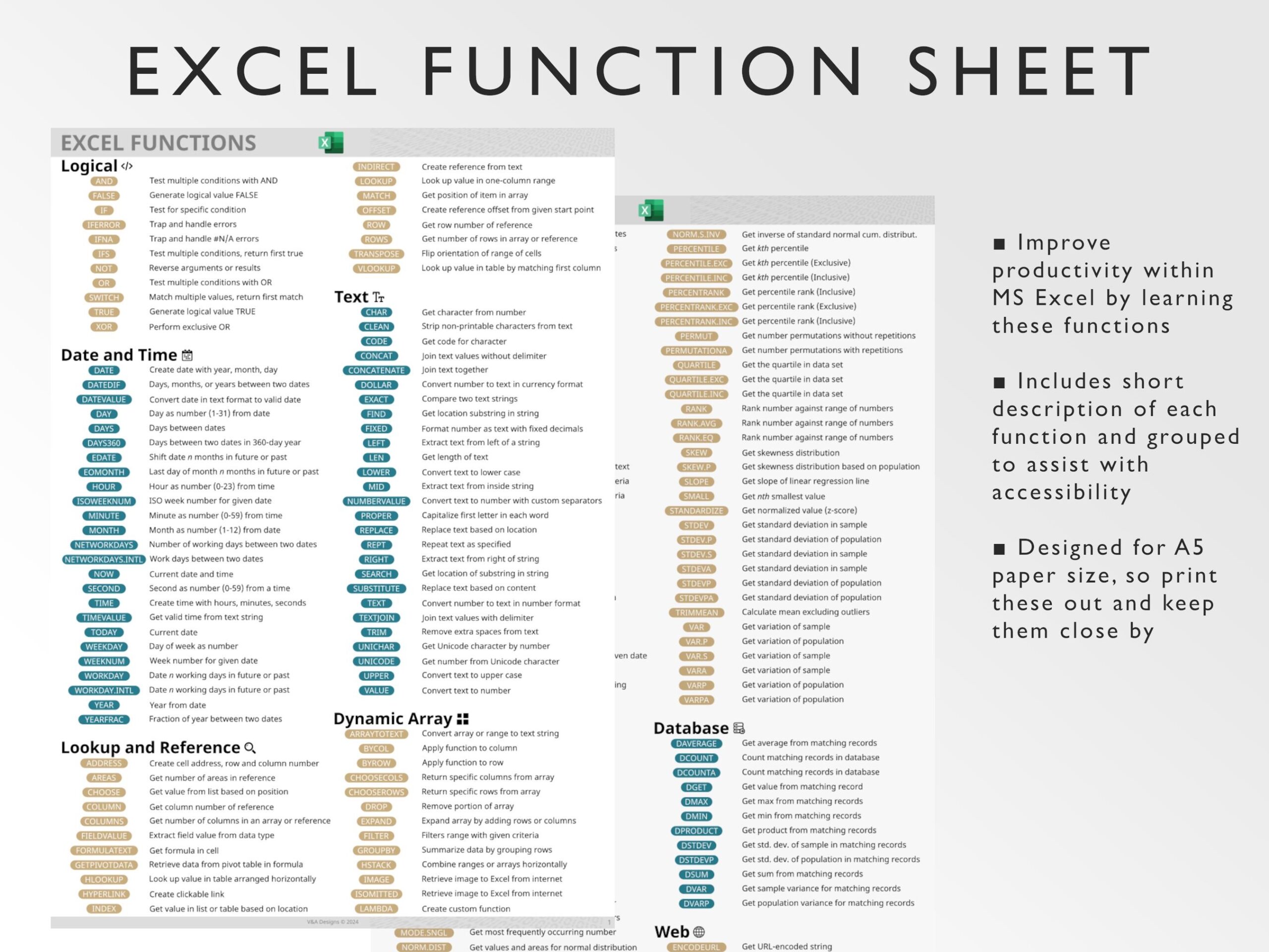 Microsoft Excel Functions Printable Excel Cheat Sheet Workbook Productivity Excel Formulas Windows Mac Excel Ninja Gold Etsy