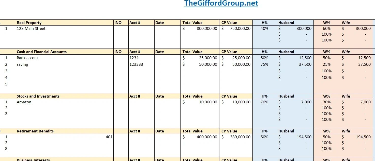 Free Printable Divorce Asset Worksheet