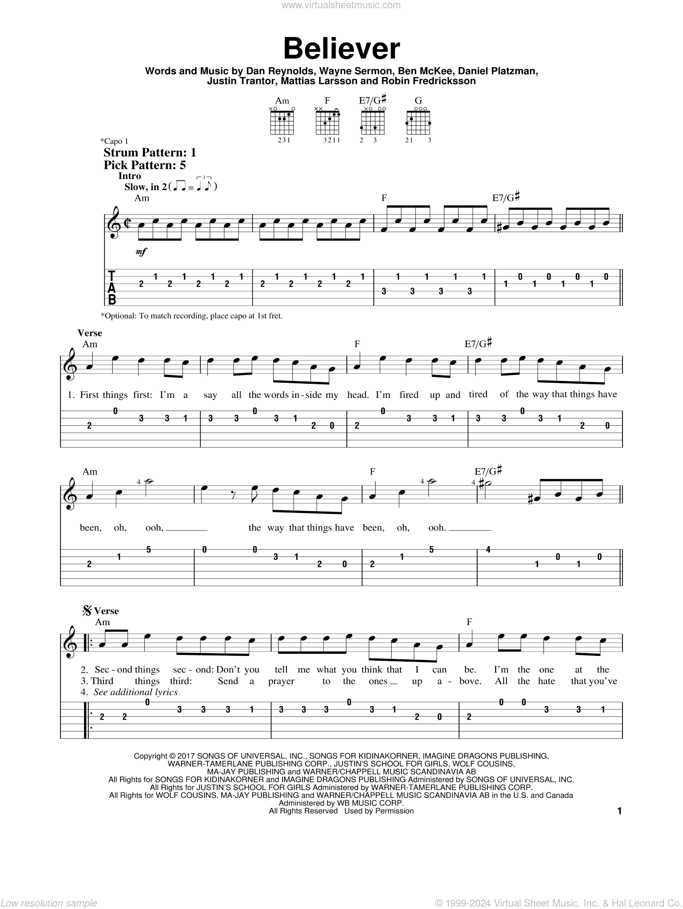 Believer Sheet Music For Guitar Solo easy Tablature PDF