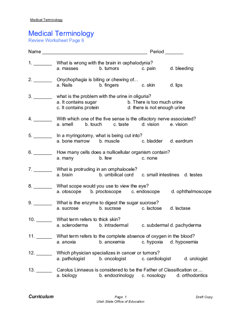 Free Printable Medical Terminology Worksheets