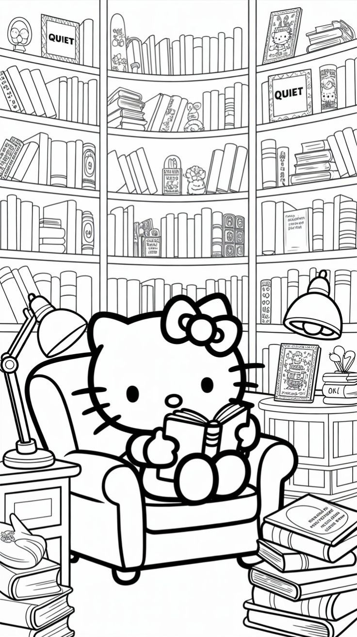 Hello Kitty Coloring Pages Free Printable Library Scene For Kids