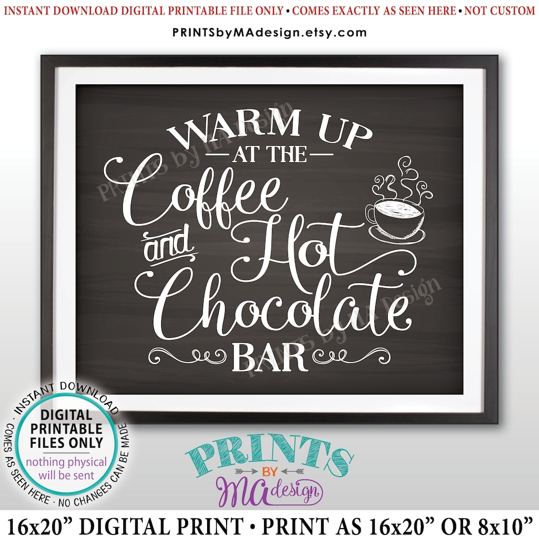 Coffee And Hot Chocolate Sign Warm Up At The Coffee Hot Chocolate Bar Coffee Sign PRINTABLE 8×10 16×20 Chalkboard Style Sign id Etsy