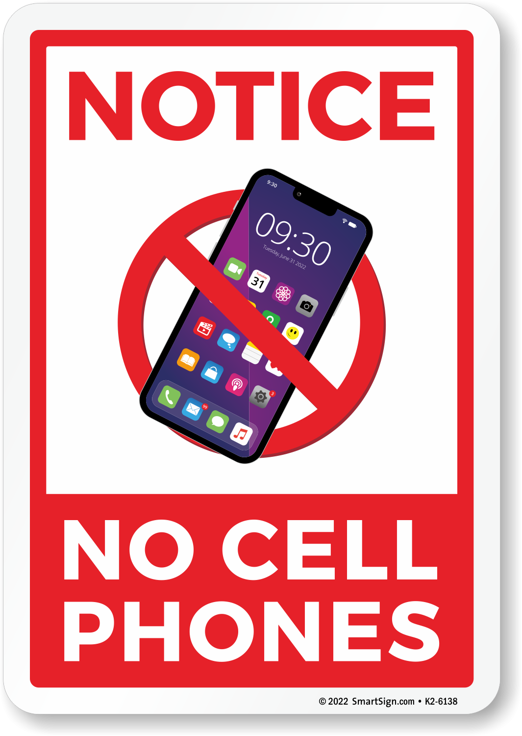 Notice No Cell Phone Sign SKU K2 6138