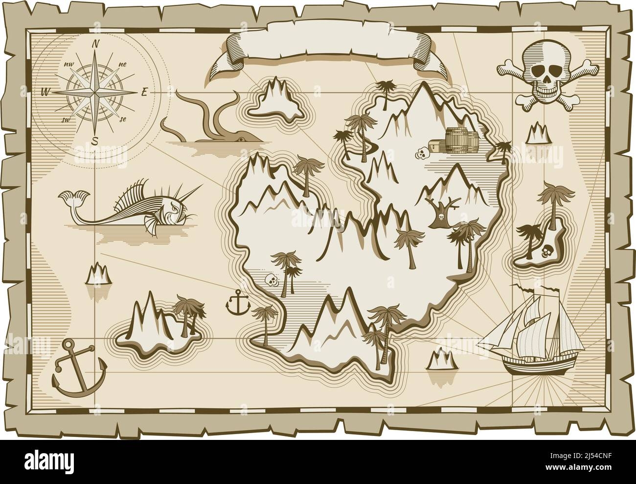 Treasure Map Template Aged Paper With Pirate Island Stock Vector Image Art Alamy