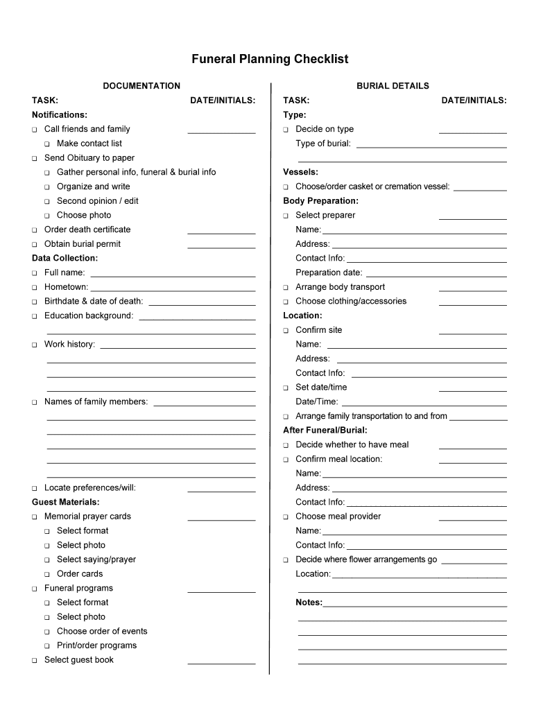 Funeral Planning Worksheet Pdf Fill Out Sign Online DocHub