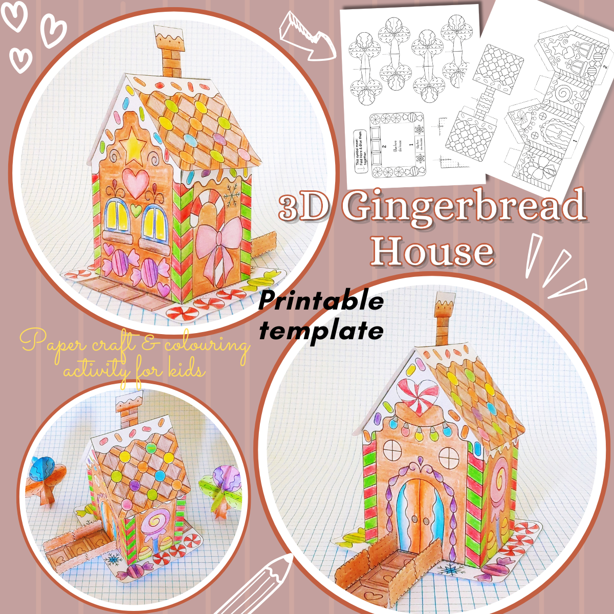 3D Gingerbread House Printable Template Paper Craft Coloring Activity Made By Teachers