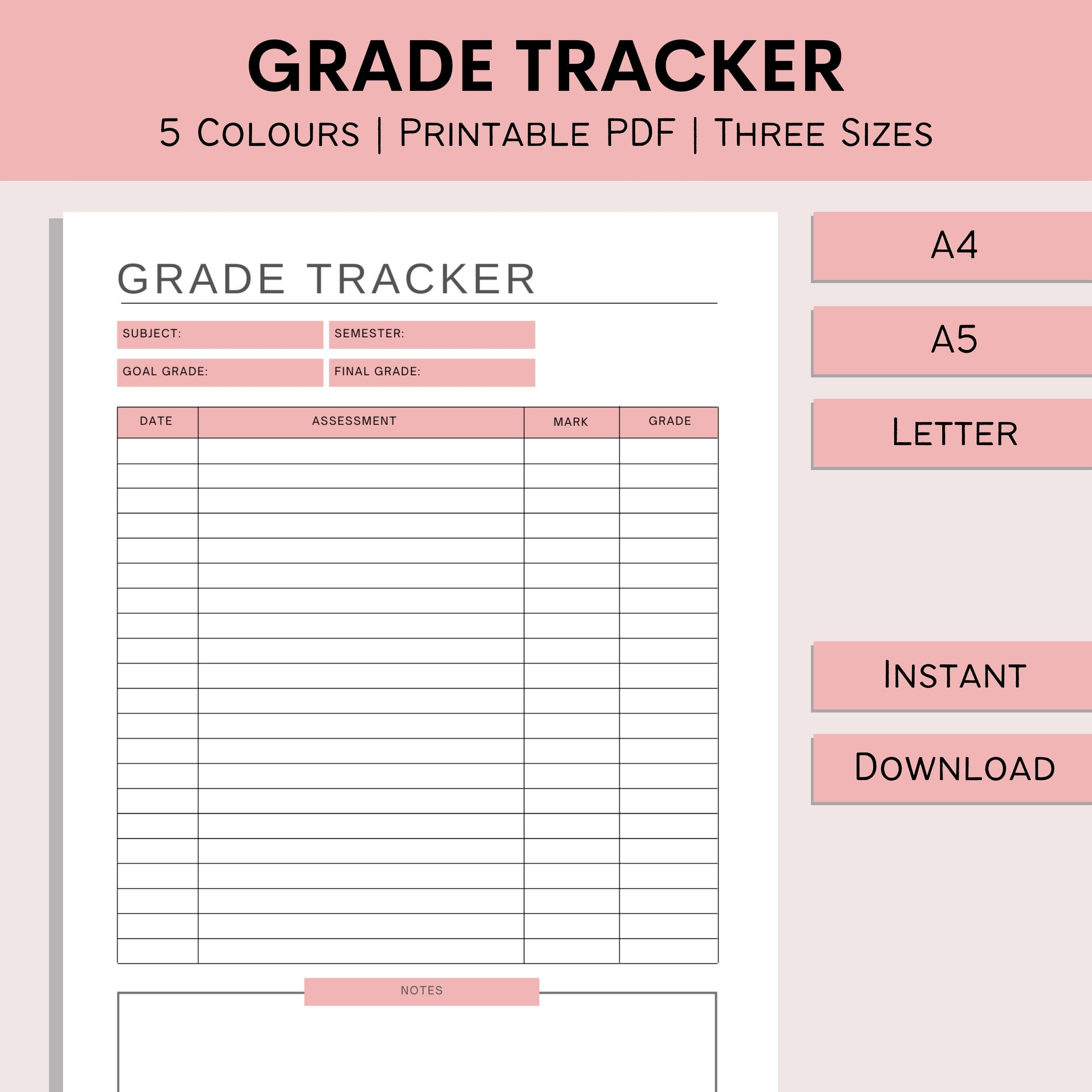 Grade Tracker Printable Assignment Log Student Grade Sheet College University Planner School Organizer PDF A4 A5 Letter Etsy