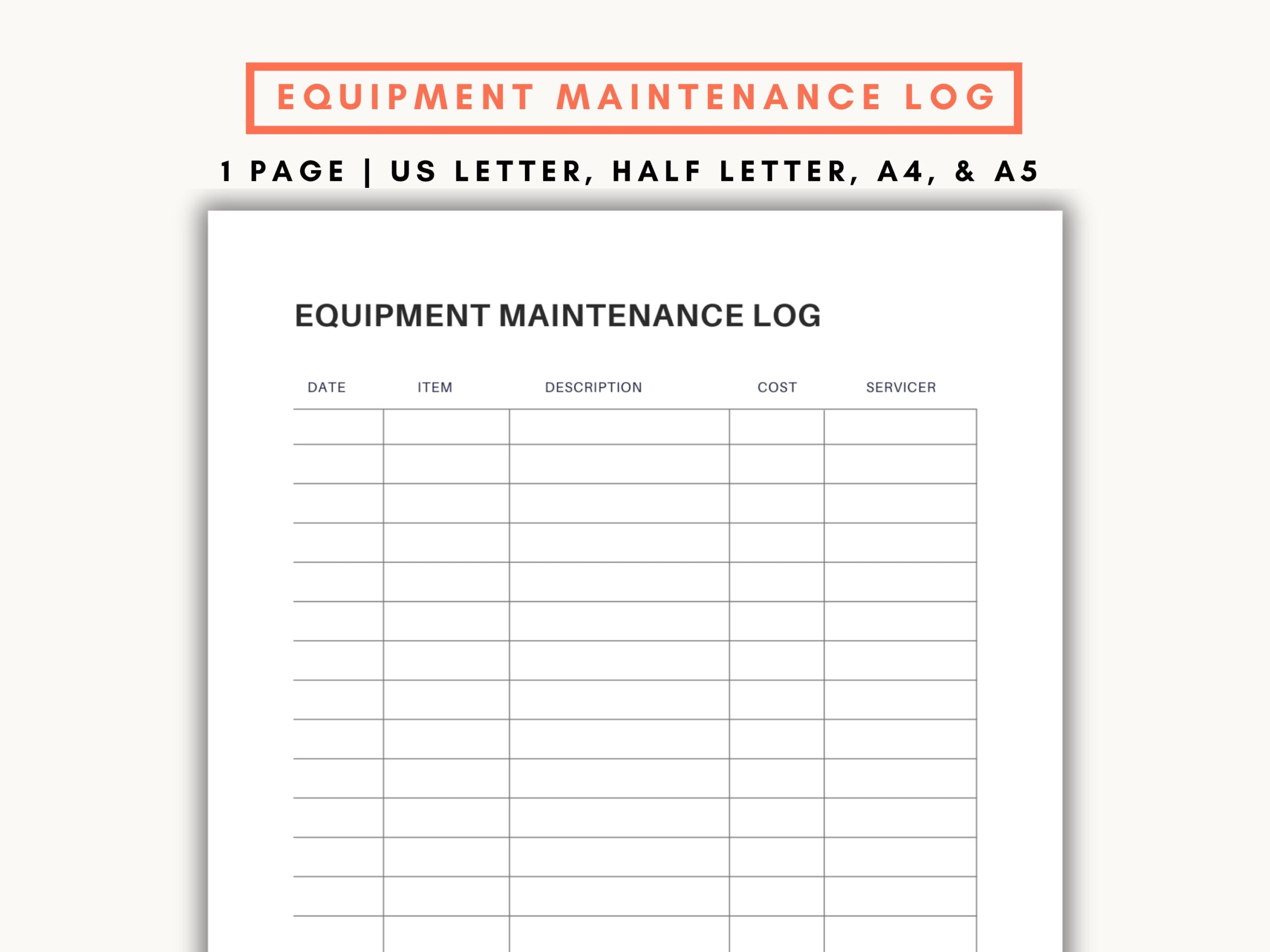 Maintenance Log 8 5 X 11 Instant Download Printable Etsy