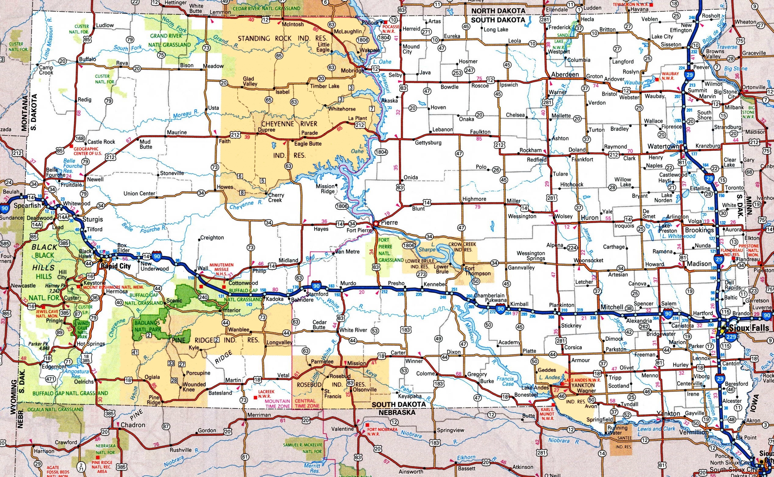 Printable Map of South Dakota