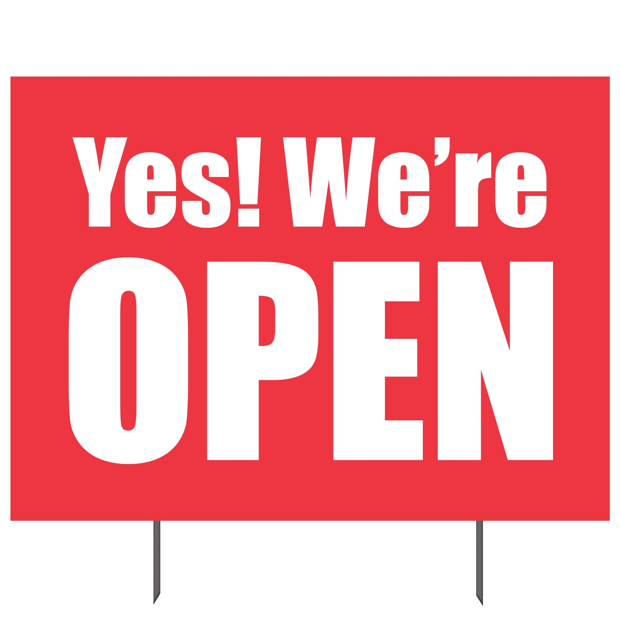 Yes We re Open Double sided Yard Sign 23×17 in Plum Grove