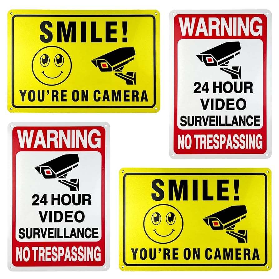 Amazon 4 Pack Smile You re On Camera Warning Signs 24 Hour Video Surveillance Sign Waterproof Rust Free Security Warning Signs For Outdoor Yard Indoor Business Industrial Scientific