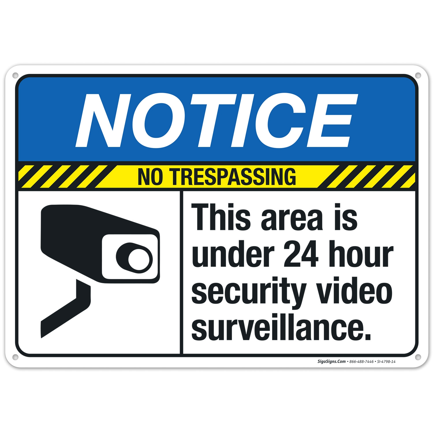 This Area Is Under 24 Hour Security Video Surveillance Sign ANSI Notice Sign