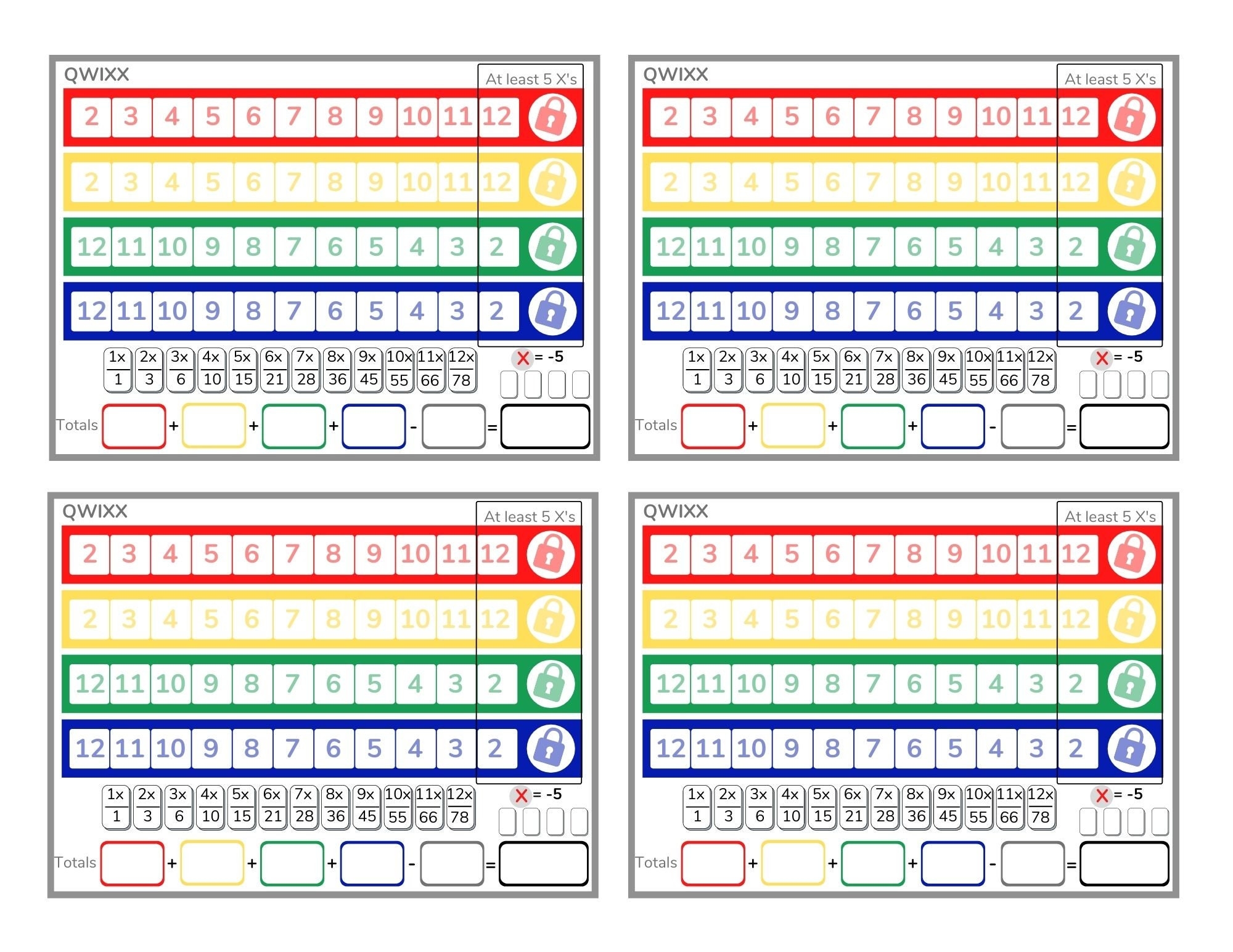 Qwixx Score Sheets Printable