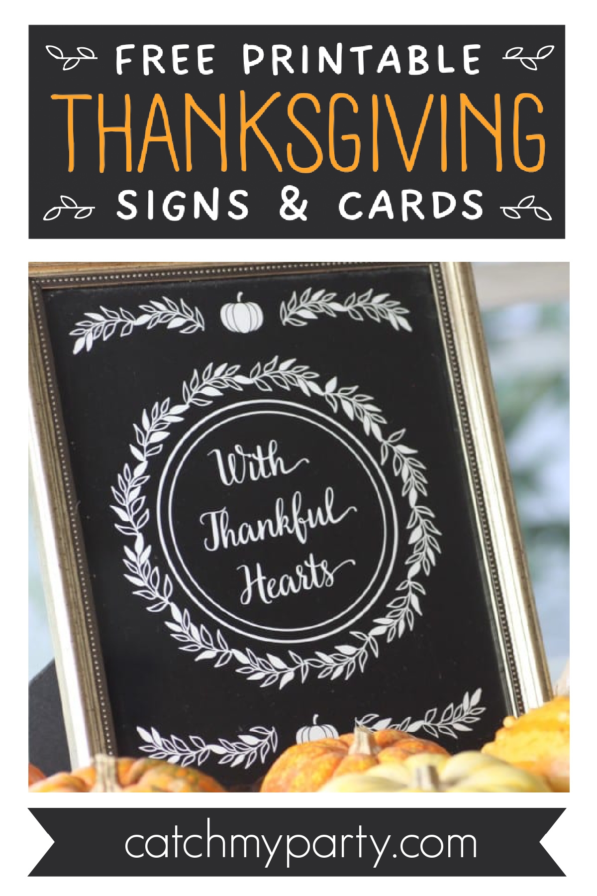 Free Printable With Thankful Hearts Thanksgiving Sign And Cards Catch My Party