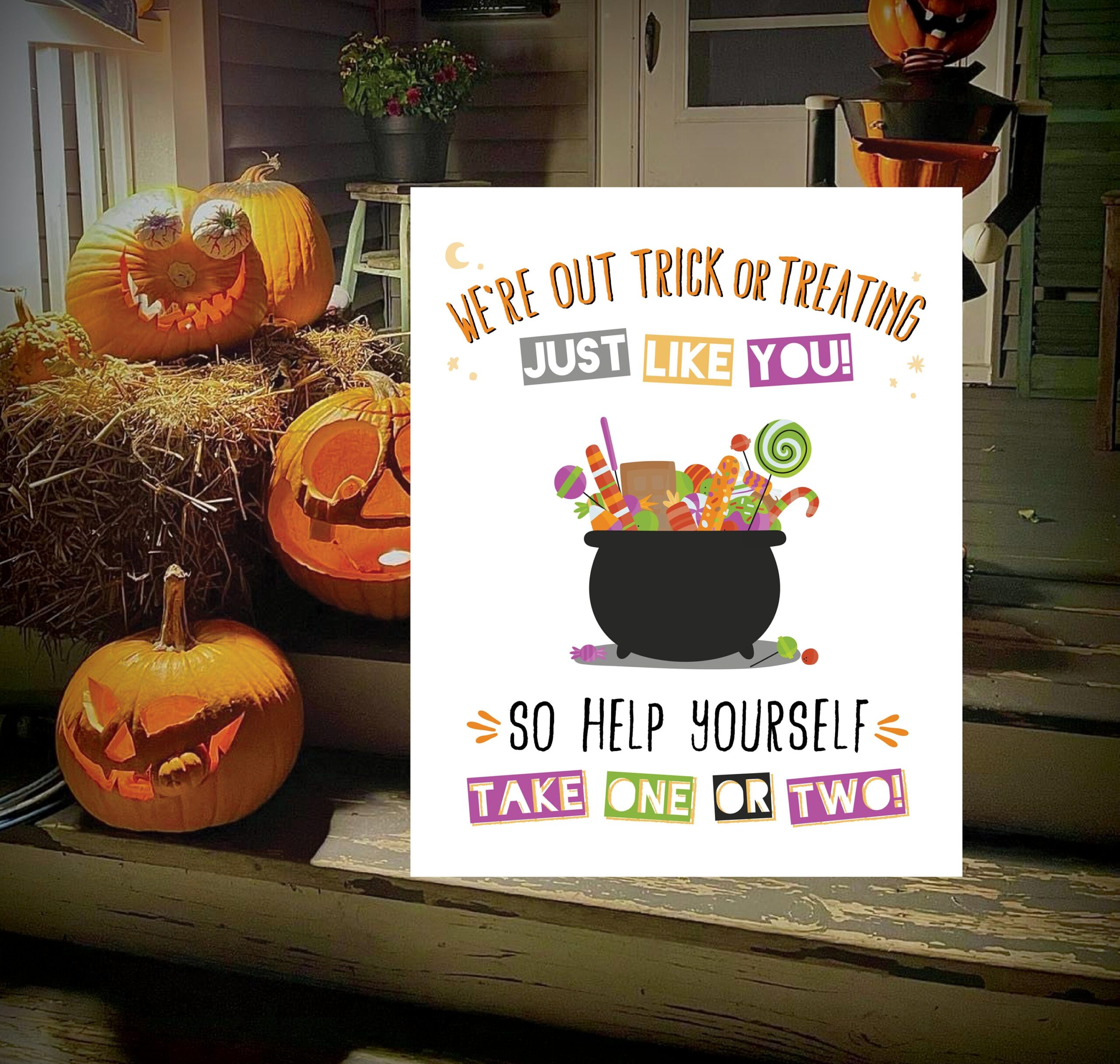 Take One Or Two Treats Halloween Trick Or Treat Sign Halloween Candy Sign Porch Trick Or Treat Sign Printable Passing Out Candy Sign Etsy