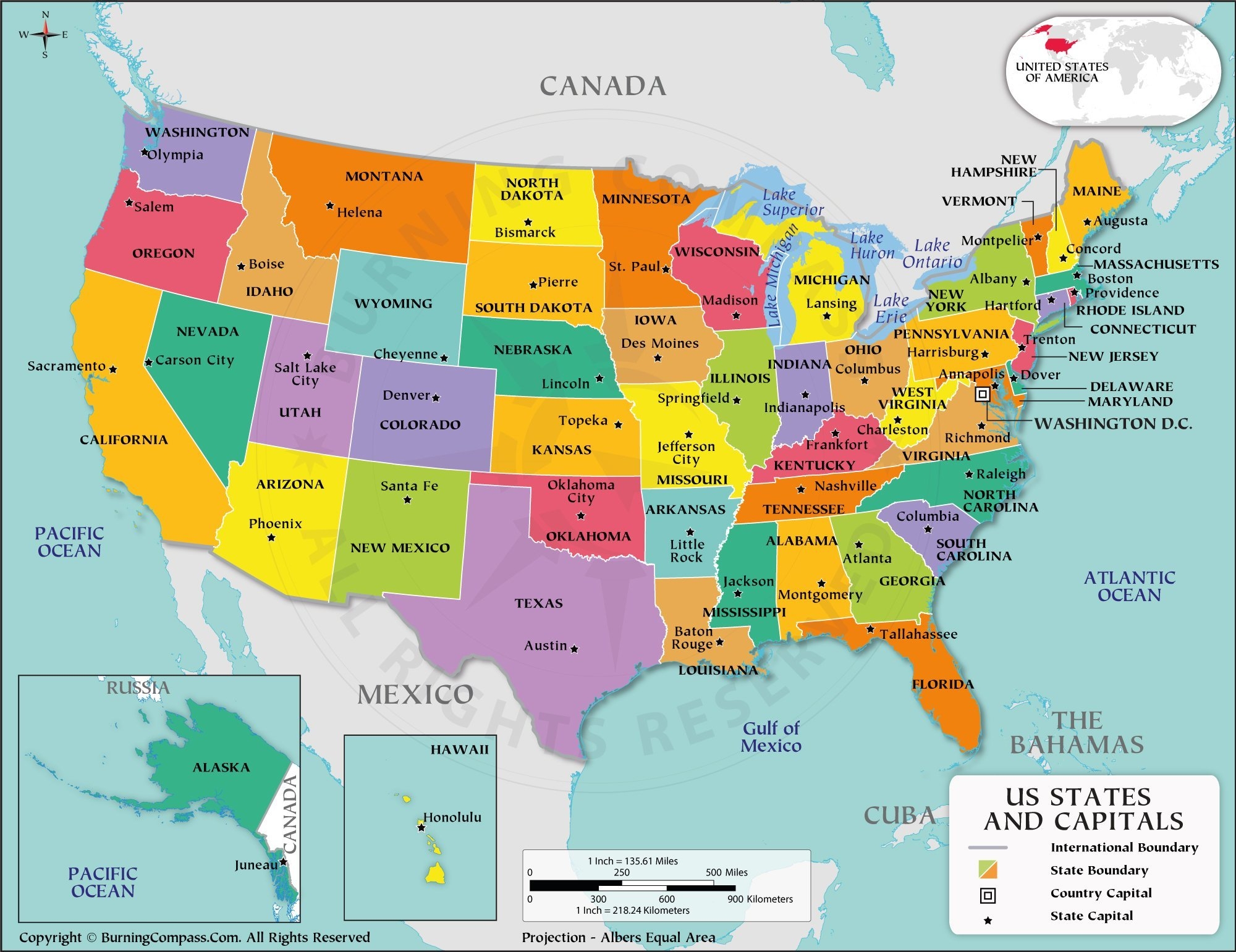 U S States And Capitals Map Ontheworldmap